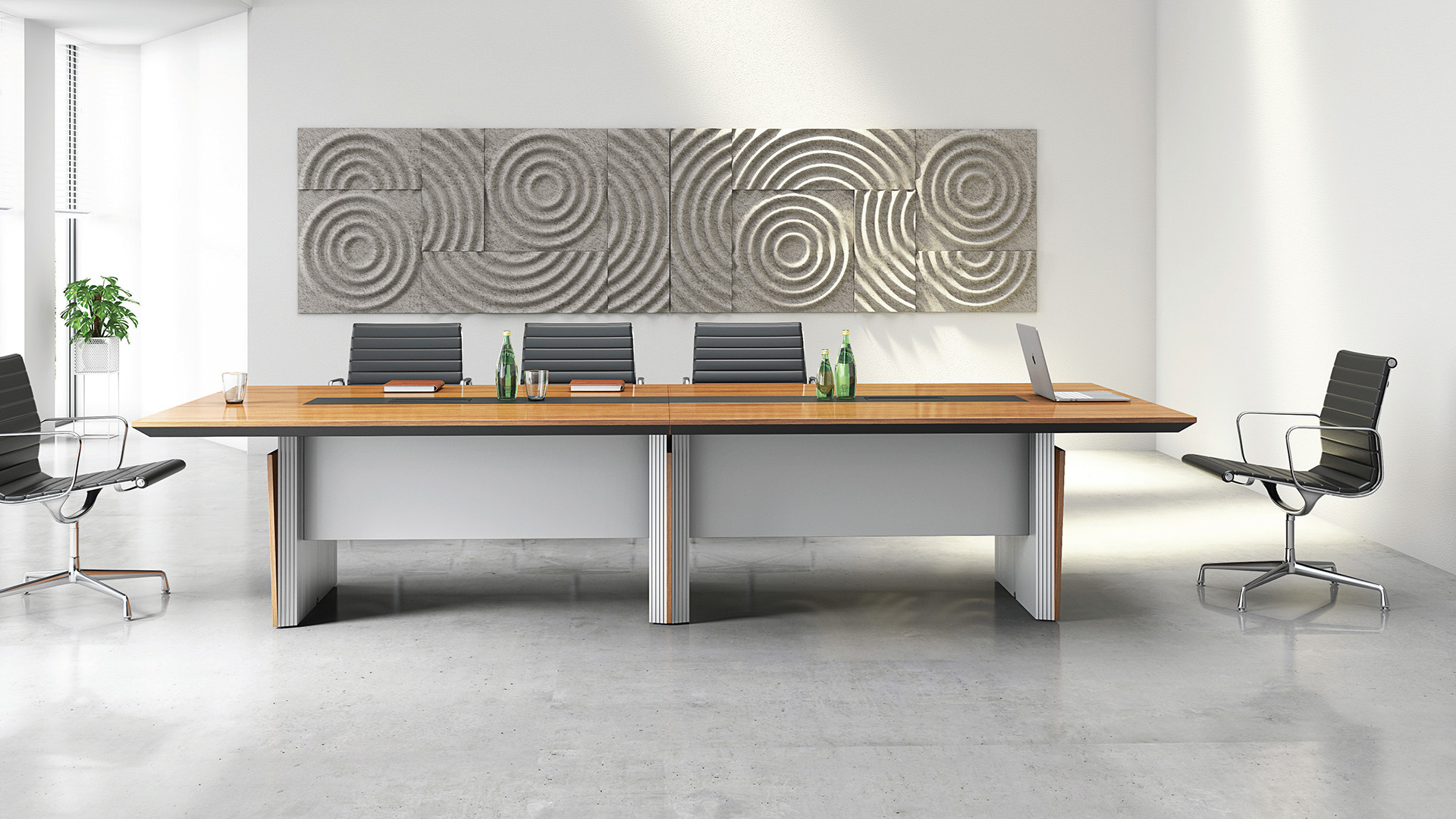 可根据会议规模与性质进行"方形”与‘条形”的多种组合。时尚美观,简约大气。